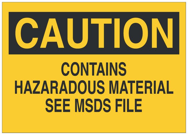 Aluminum Caution Sign: CONTAINS HAZARDOUS MATERIAL SEE MSDS FILE, Each