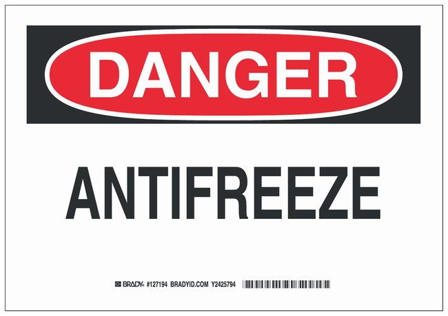 Aluminum Danger Sign: ANTIFREEZE, Each