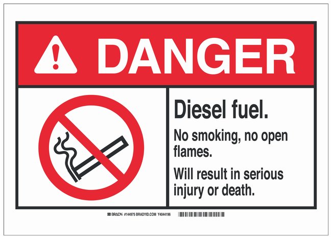Aluminum Danger Sign: DIESEL FUEL. NO SMOKING. NO OPEN FLAMES. WILL RESULT IN SERIOUS INJURY OR DEATH, Each