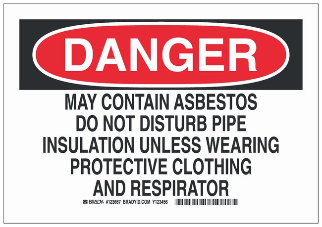 Aluminum Danger Sign: MAY CONTAIN ASBESTOS DO NOT DISTURB PIPE INSULATION UNLESS WEARING PROTECTIVE CLOTHING AND RESPIRATOR, Each