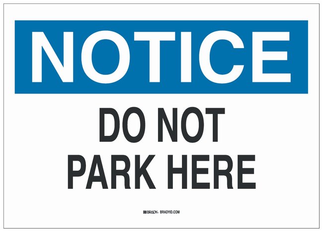 Improve workplace safety with proper signage and markings. This Brady™ corner hole mounted sign is a durable, clear and effective tool to mark No Parking areas.