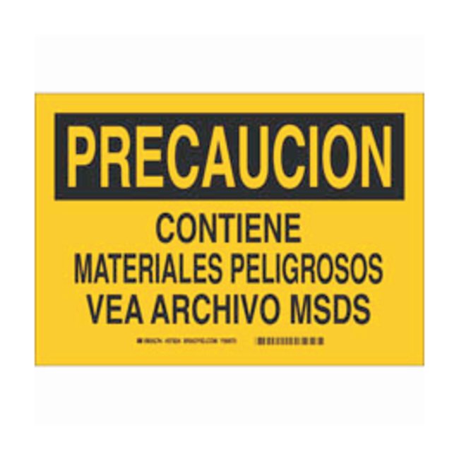 Aluminum Precaution Sign: CONTIENE MATERIALES PELIGROSOS VEA ARCHIVO MSDS, Each