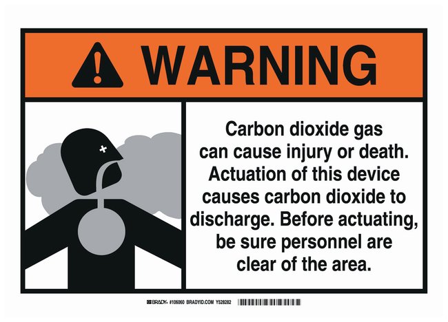 Aluminum Warning Sign: CARBON DIOXIDE GAS CAN CAUSE INJURY OR DEATH. ACTUATION OF THIS DEVICE CAUSES CARBON DIOXIDE TO DISCHARGE. BEFORE ACTUATING – CLEAR OF THE AREA, Improve workplace safety with proper signage. The Warning Sign is a durable, clear and effective tool to properly mark appropriate areas and to help prevent workplace injury, Each