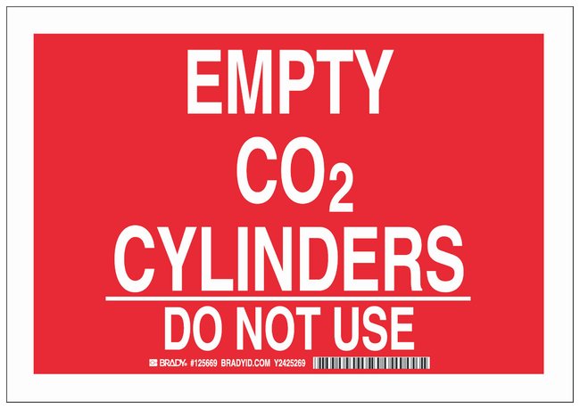 Aluminum Warning Sign: EMPTY CO2 CYLINDERS DO NOT USE, Each