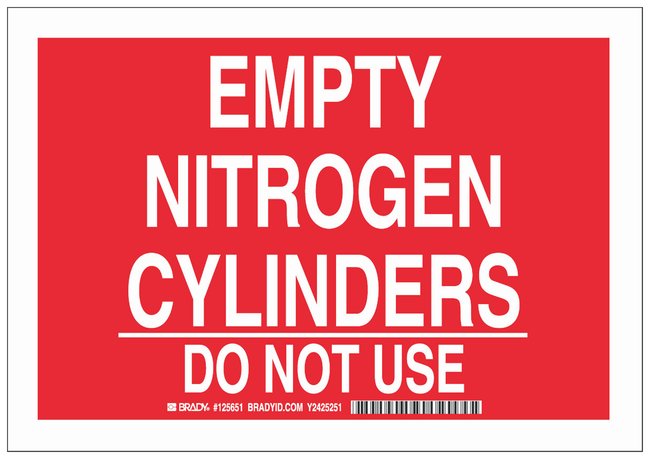 Aluminum Warning Sign: EMPTY NITROGEN CYLINDERS DO NOT USE, Each