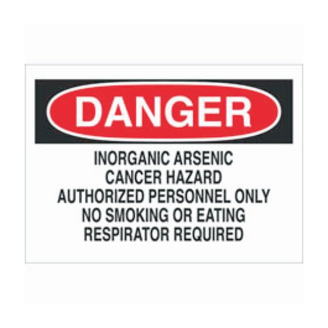 Aluminum Warning Sign: INORGANIC ARSENIC CANCER HAZARD AUTHORIZED PERSONNEL ONLY NO SMOKING OR EATING RESPIRATOR REQUIRED, Each
