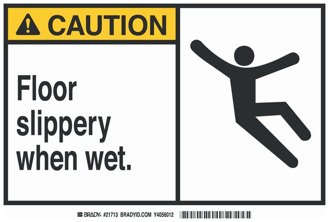 Improve workplace safety with non-adhesive mounted signage. The Brady™ Slippery When Wet ANSI Sign is a durable, clear and effective tool to properly mark appropriate areas and to help prevent workplace injury.