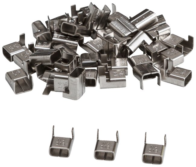 Banding Heads, Used for creating secure closure. Banding Heads fits 1/4 in. strapping and is made up of Stainless Steel material, Pack of 100