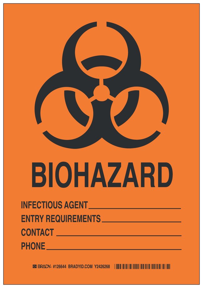 Biohazard Identification Signs: Biohazard Infectious Agent Entry Requirements Contact Phone, Each