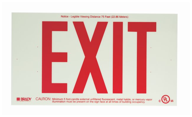 Made of BradyGlo™ PlasticLegend: EXITAvailable in Green and RedSize: 38.1W x 21cm H (15 x 8.25 in.)CertificationsUL listed