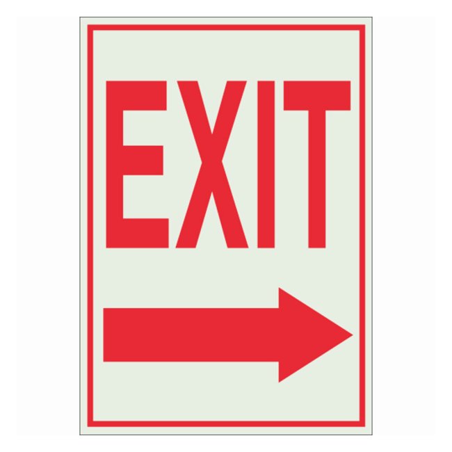 Photoluminescent signEnsures safe well-lit exit during evacuationBradyGlo™ self sticking polyesterRed on greenEnglish17.78 x 25.40cm (7 x 10 in.)