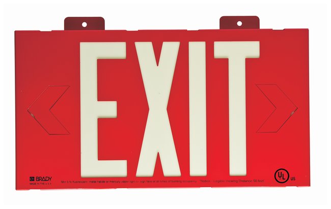Legend: EXITMaterial: Glow-in-the-Dark BradyGlo PhotoluminescentLanguage: EnglishWall-mounted and maintenance-freeMay qualify for LEED credits and visibility 50 ft. (15.2m)W x H: 15.25 x 8.25 in. (38.7 x 21cm)CertificationsUL listed
