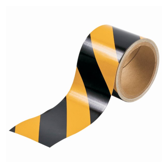 Ideal for temporary use outdoors or permanent indoor warningSold as rollB-957 Reflective Vinyl with AdhesiveThickness: 1.65 to 1.91mm (0.065 to 0.075 in.)Service temp.: -40° to 70°C (-40° to 160°F)B-950 Encapsulated Vinyl with Adhesive Thickness: 0.15mm (0.006 in.) Service temp.: -40° to 80°C (-40° to 176°F)ComplianceB-950 warning stripe and check tape meets OSHA specifications.