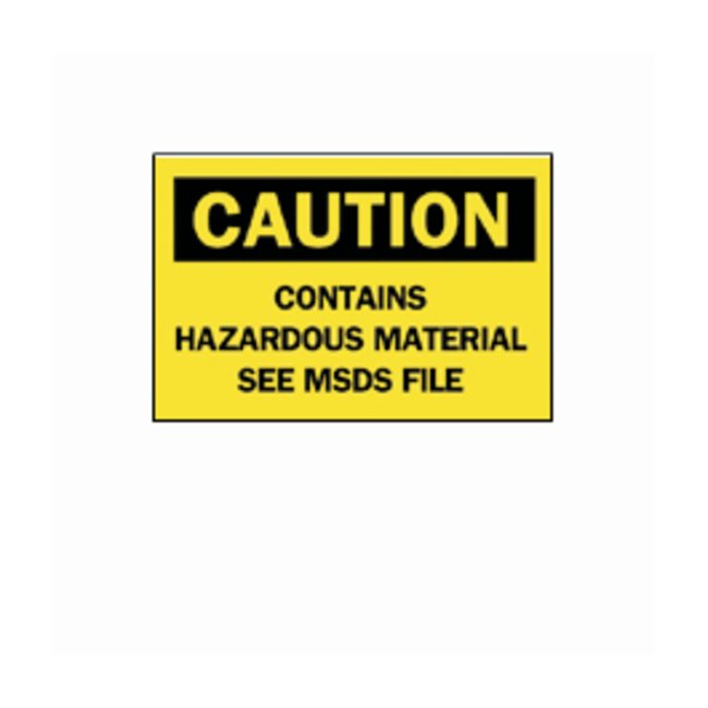 ldquo;Caution: Contains Hazardous Material” Laboratory Signs B-302 is an high performance pressure sensitive safety sign, and is surface printed polyester with a polyester overlaminate.