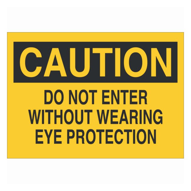 ldquo;Caution: Do Not Enter Without Wearing Eye Protection” B-401 plastic signs from Brady™ are ideal for use in light duty industrial, utility, commercial and institutional environments.