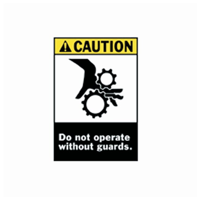 ldquo;Caution: Do Not Operate Without Guards” safety signs from Brady™ that help to manage and sustain a clean and safe workplace. They are available in a variety of materials and sizes to best fit your application.
