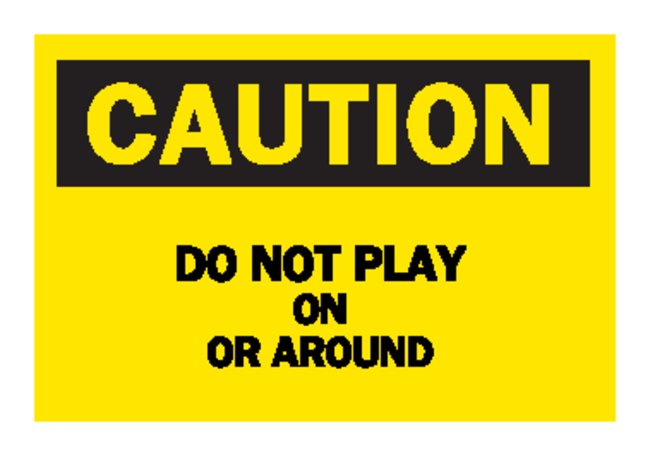 ldquo;Caution: Do Not Play On Or Around” Signs, “Caution: Do Not Play On Or Around” Signs to reinforce proper operational procedures, Each