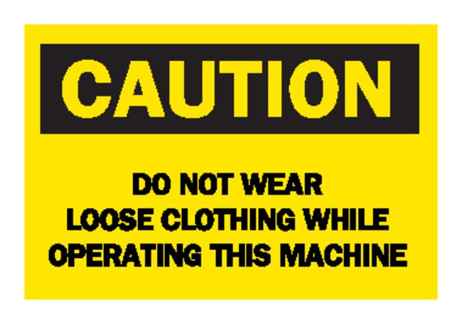 ldquo;Caution: Do Not Wear Loose Clothing...” Signs to reinforce proper operational procedures.