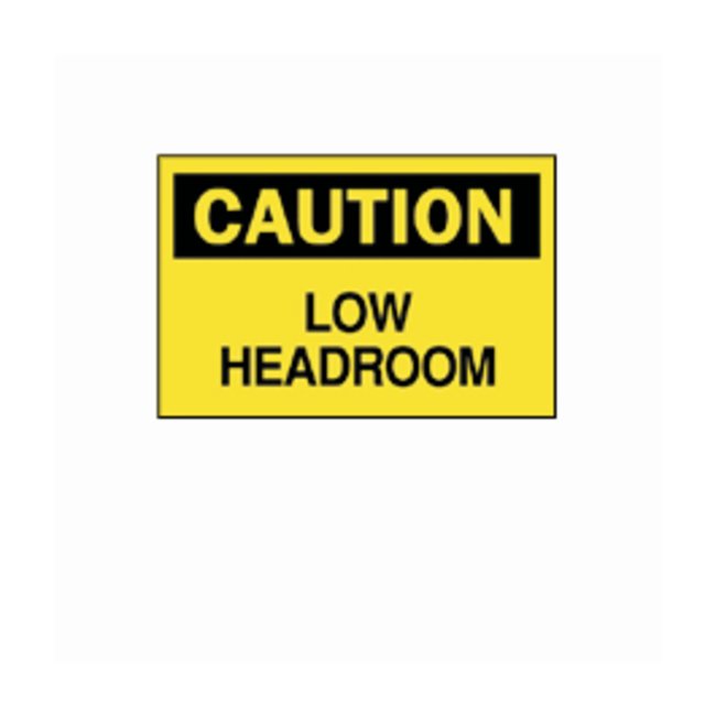 Sign reads “CAUTION - LOW HEADROOM”Black on yellowAvailable in different sizes and material