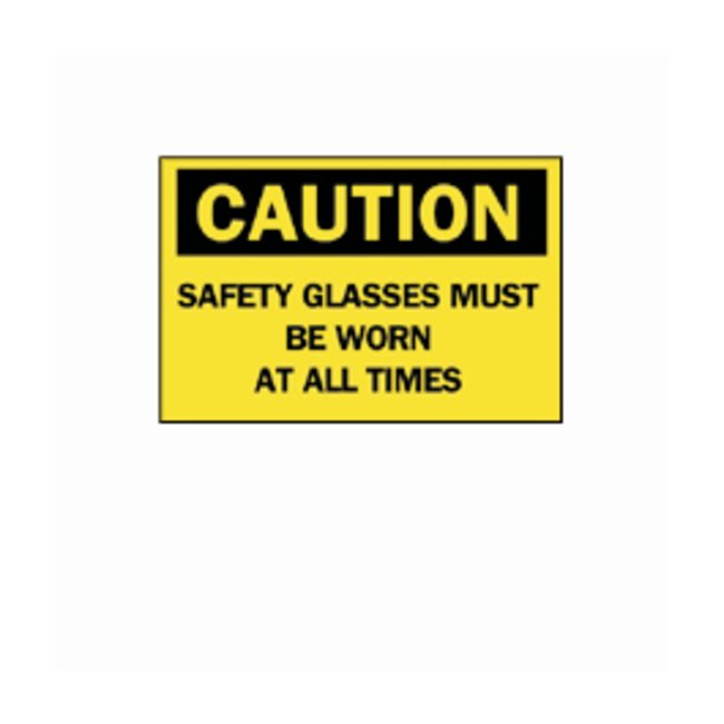 ldquo;Caution: Safety Glasses Must Be Worn At All Times” Signs, Each