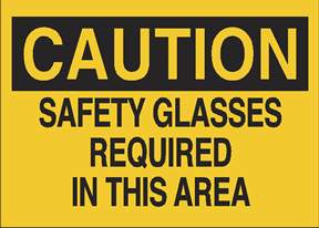 ldquo;Caution: Safety Glasses Required...” Signs, Each