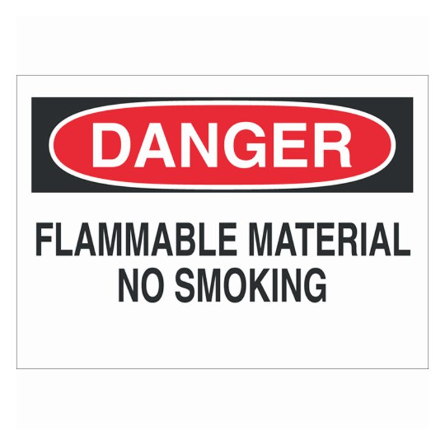 Chemical and Hazardous Materials Sign: DANGER - FLAMMABLE MATERIAL NO SMOKING, For identifying chemical storage and hazardous materials areas, Each