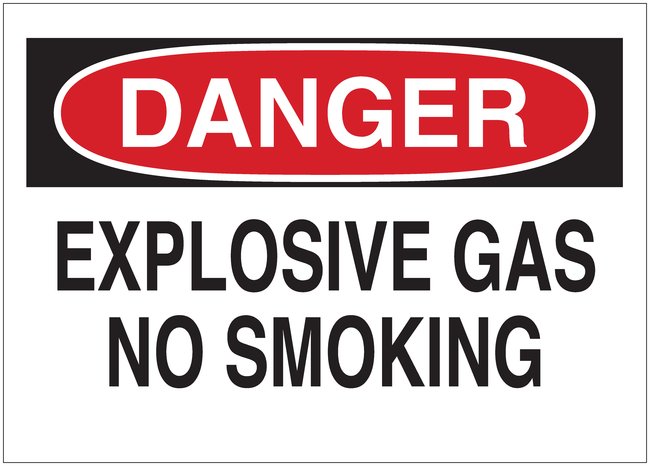 Chemical and Hazardous Materials Signs: DANGER - EXPLOSIVE GAS NO SMOKING, Each