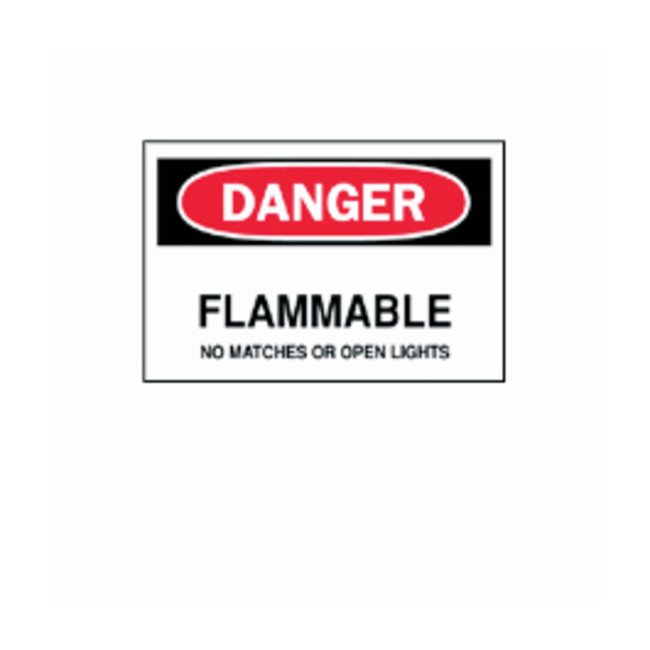 Chemical and Hazardous Materials Signs: DANGER - FLAMMABLE NO MATCHES OR OPEN LIGHTS, Each
