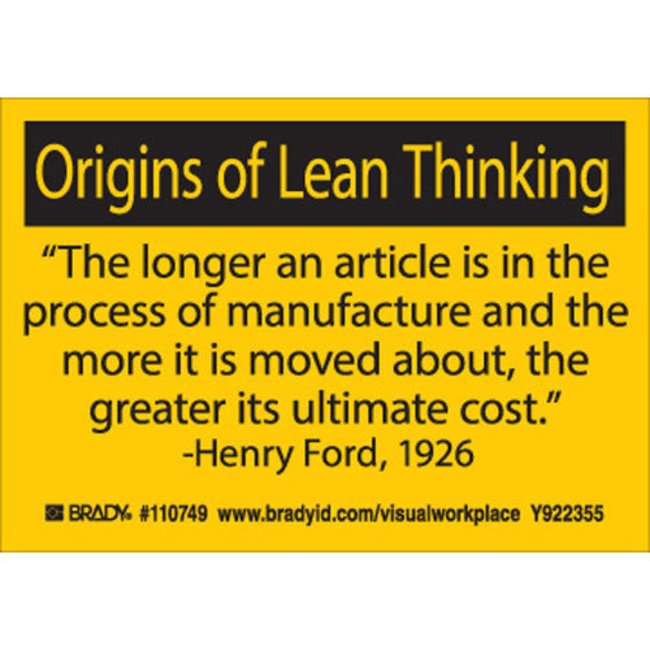 Motivational and Improvement Signs: THE LONGER AN ARTICLE IS IN THE PROCESS OF MANUFACTURE AND THE MORE IT IS MOVED ABOUT, THE GREATER ITS ULTIMATE COST. -HENRY FORD, 1926, Self-Sticking Polyester: Self-Sticking Polyester (B-302) is a flexible polymer plastic over-laminated with a clear plastic coating to protect graphics against abrasion, sunlight, chemicals, Pack of 10