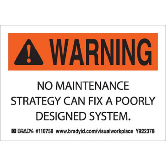 NO MAINTENANCE STRATEGY CAN FIX A POORLY DESIGNED SYSTEM Maintenance Repair Labels, Pack of 10