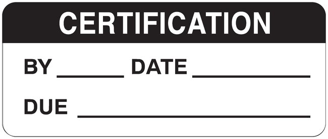 Write-On Inspection Label, Header: Certification, Legend: By, Date, Due, Pack of 14