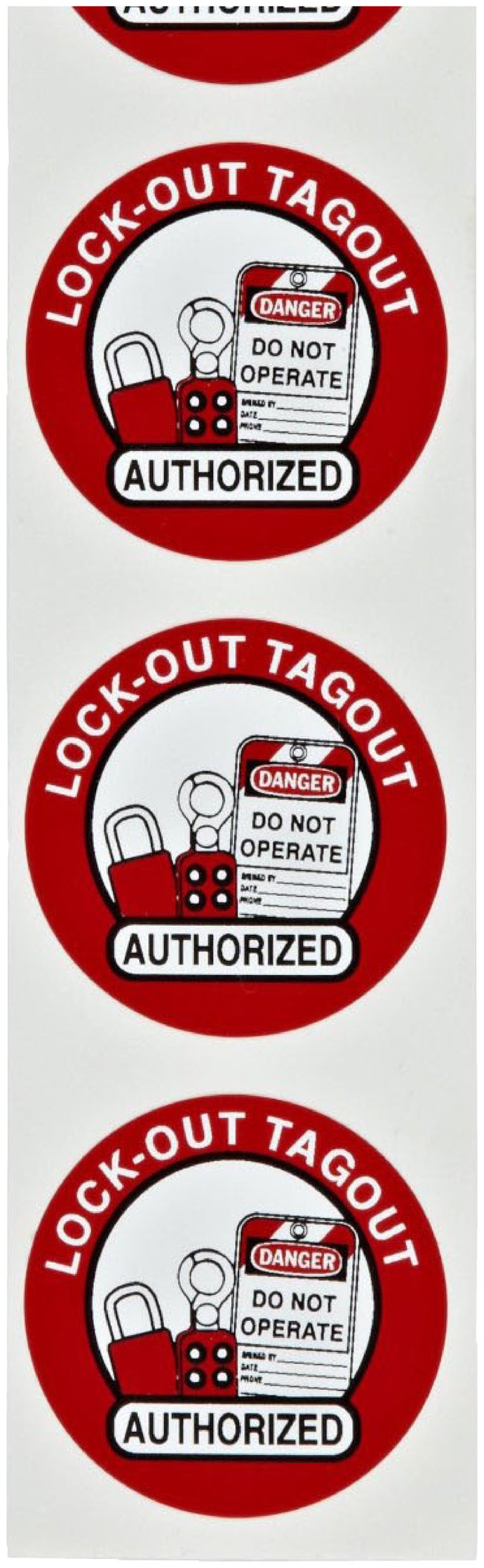 Hard Hat Label, LOTO Authorized, Legend: LOCKOUT TAGOUT AUTHORIZED (w/picto), Each