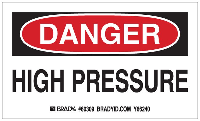 Gas Cylinder Label, Header: DANGER, Legend: HIGH PRESSURE, Pack of 10