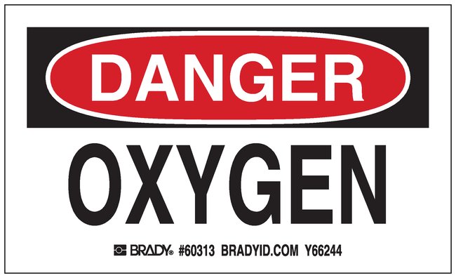 Gas Cylinder Label, Header: DANGER, Legend: OXYGEN, Pack of 10