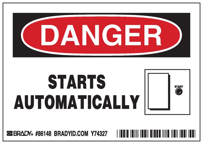 Machine/Equipment Label, Header: DANGER, Legend: STARTS AUTOMATICALLY, Pack of 5