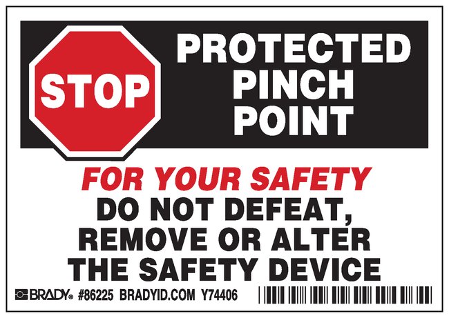 Machine and Equipment Label, Legend: STOP PROTECTED PINCH POINT FOR YOUR SAFETY DO NOT, Pack of 5