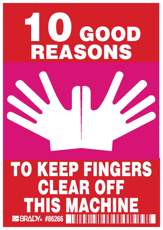 Machine/Equipment Label, Header: No Header, Legend: 10 GOOD REASONS……OFF THIS MAC, Pack of 5