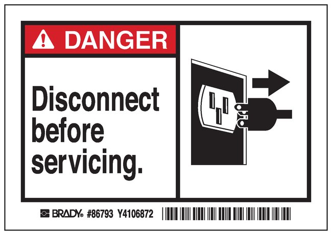 Machine/Equipment Label, Header: DANGER, Legend: DISCONNECT BEFORE SERVICING, Pack of 5