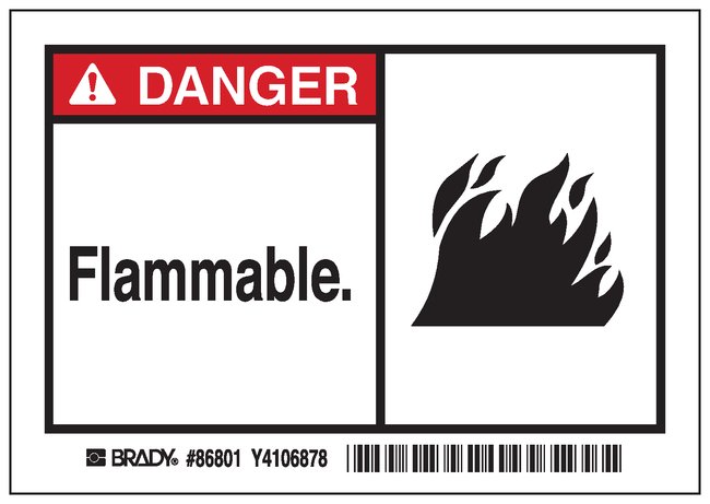Machine/Equipment Label, Header: DANGER, Legend: FLAMMABLE, Pack of 5