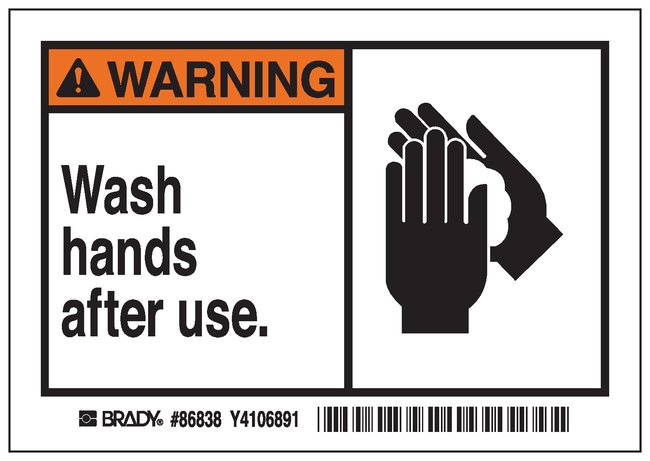 Machine/Equipment Label, Header: WARNING, Legend: Wash hands after use, Pack of 5