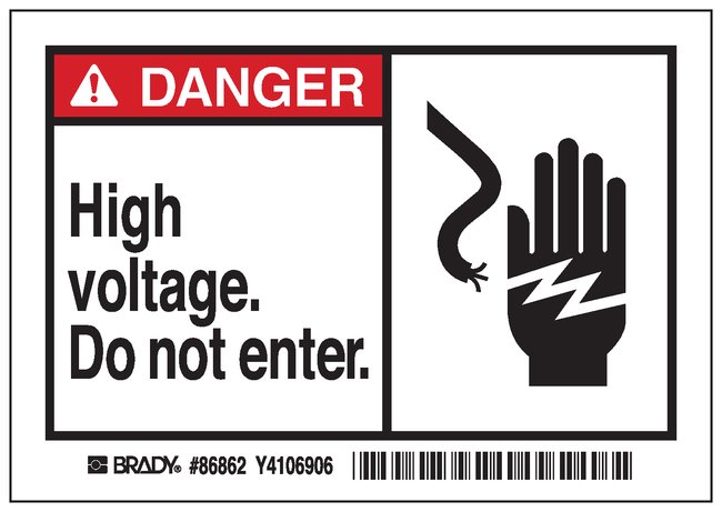 Machine/Equipment Label, Header: DANGER, Legend: High voltage Do not enter, Pack of 5