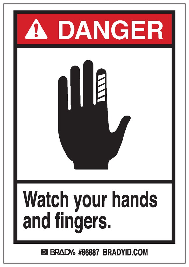 Machine/Equipment Label, Header: DANGER, Legend: Watch your hands and fingers, Pack of 5