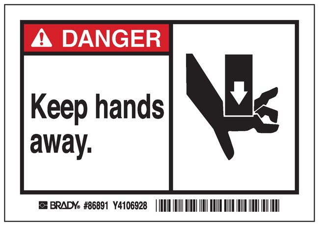 Machine/Equipment Label, Header: DANGER, Legend: KEEP HANDS AWAY, Pack of 5