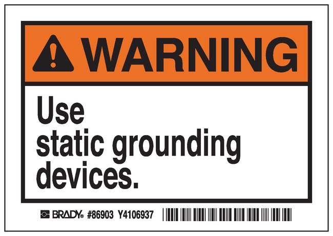 Machine/Equipment Label, Header: WARNING, Legend: Use static grounding devices, Pack of 5
