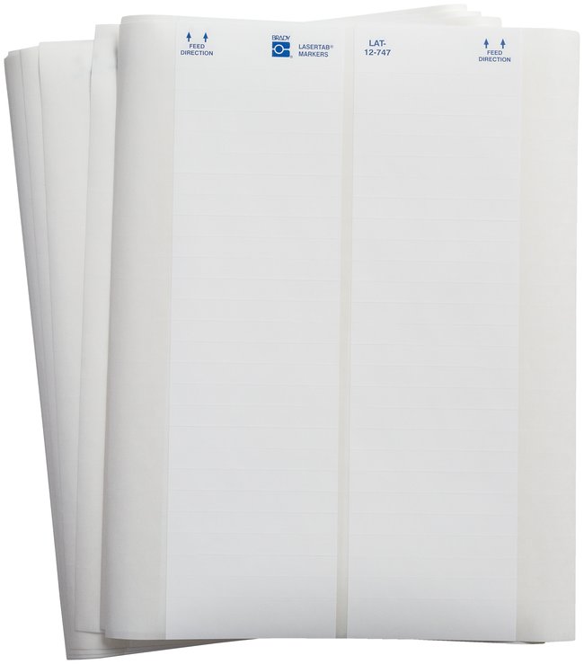 Designed for use with laser printers. Brady LASERTAB Laser Printable Labels are made of B-747 polyester.