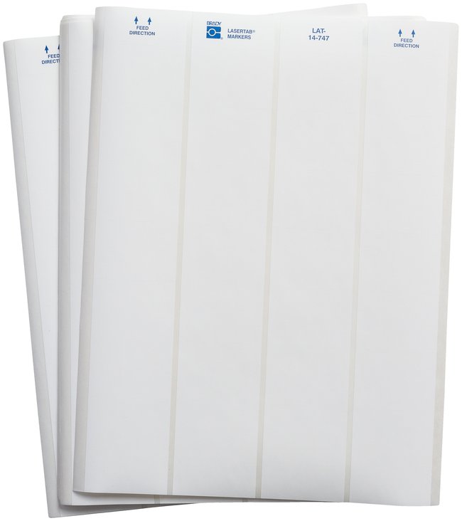 Designed for use with laser printers. Brady LASERTAB Laser Printable Labels are made of B-747 polyester.