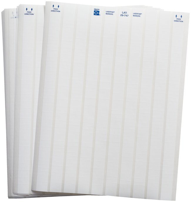 Designed for use with laser printers. Brady LASERTAB Laser Printable Labels are made of B-747 polyester.