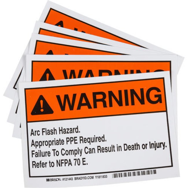 Arc Flash Labels - Adhesive Vinyl - 5 in H x 7 in W, Pack of 5
