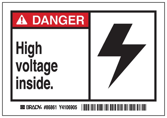 Machine/Equipment Label, Header: DANGER, Legend: HIGH VOLTAGE INSIDE, Pack of 5