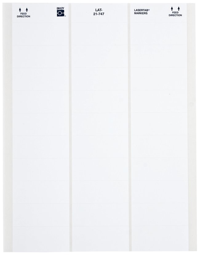 Designed for use with laser printers. Brady LASERTAB Laser Printable Labels are made of B-747 polyester.